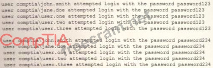 Question 39: A security analyst sees the following log output while revie...