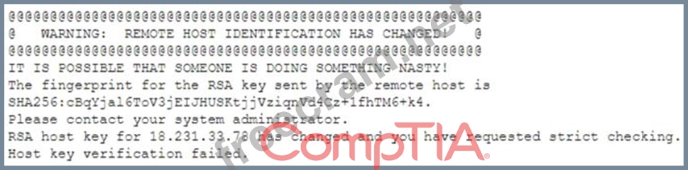 A researcher has been analyzing large data sets for the last ten months. The researcher works with colleagues from other institutions and typically connects via SSH to retrieve additional dat a. Historically, this setup has worked without issue, but the researcher recently started getting the following message: