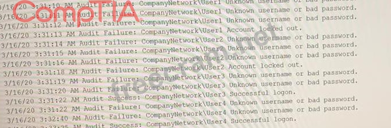 A security analyst needs to determine how an attacker was able to use User3 to gain a foothold within a company's network. The company's lockout policy requires that an account be locked out for a minimum of 15 minutes after three unsuccessful attempts. While reviewing the log files, the analyst discovers the following:
