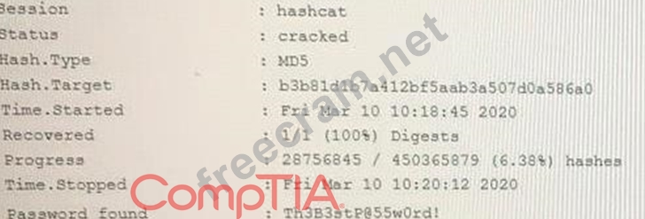 Question 50: An attacker has successfully exfiltrated several non-salted ...