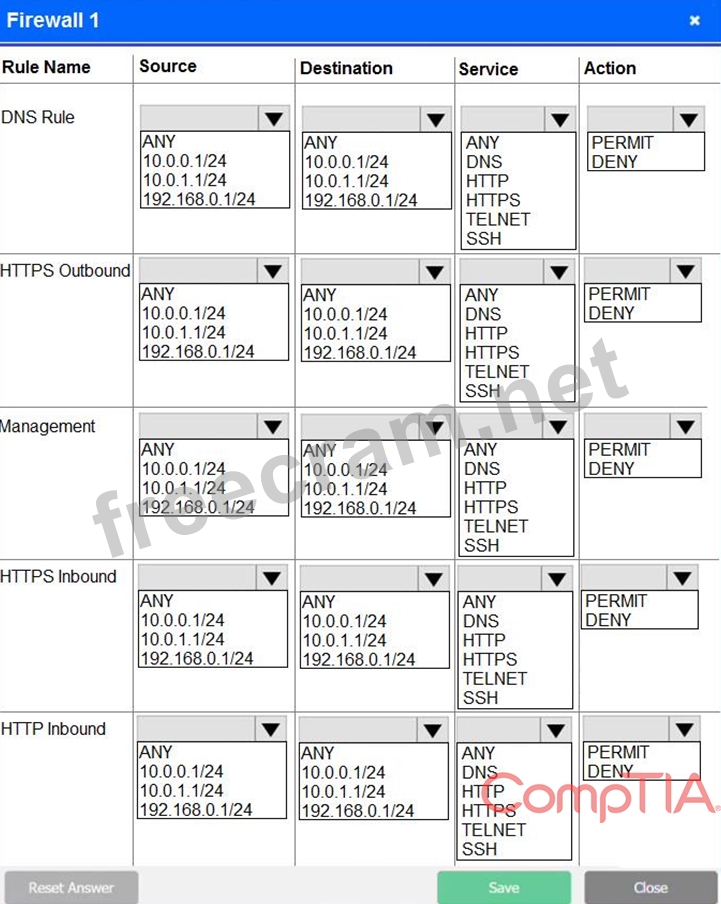 Click on each firewall to do the following: