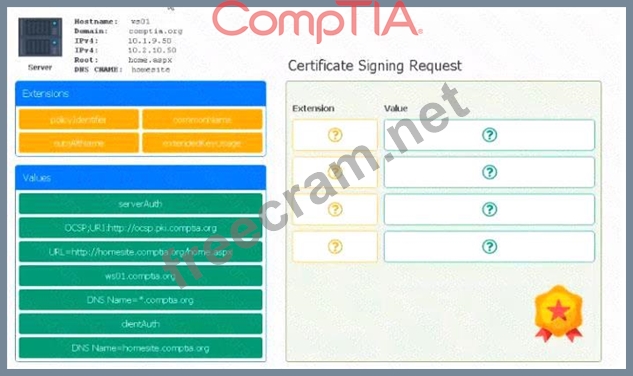 Drag the various data points to the correct locations within the CSR. Extension criteria belong in the let hand column and values belong in the corresponding row in the right hand column.