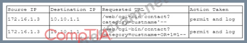 A security analyst is investigating suspicious traffic on the web server located at IP address 10.10.1.1. A search of the WAF logs reveals the following output: