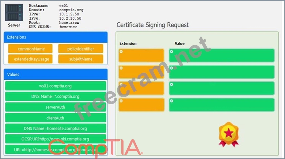 Drag the various data points to the correct locations within the CSR. Extension criteria belong in the left-hand column and values belong in the corresponding row in the right-hand column.