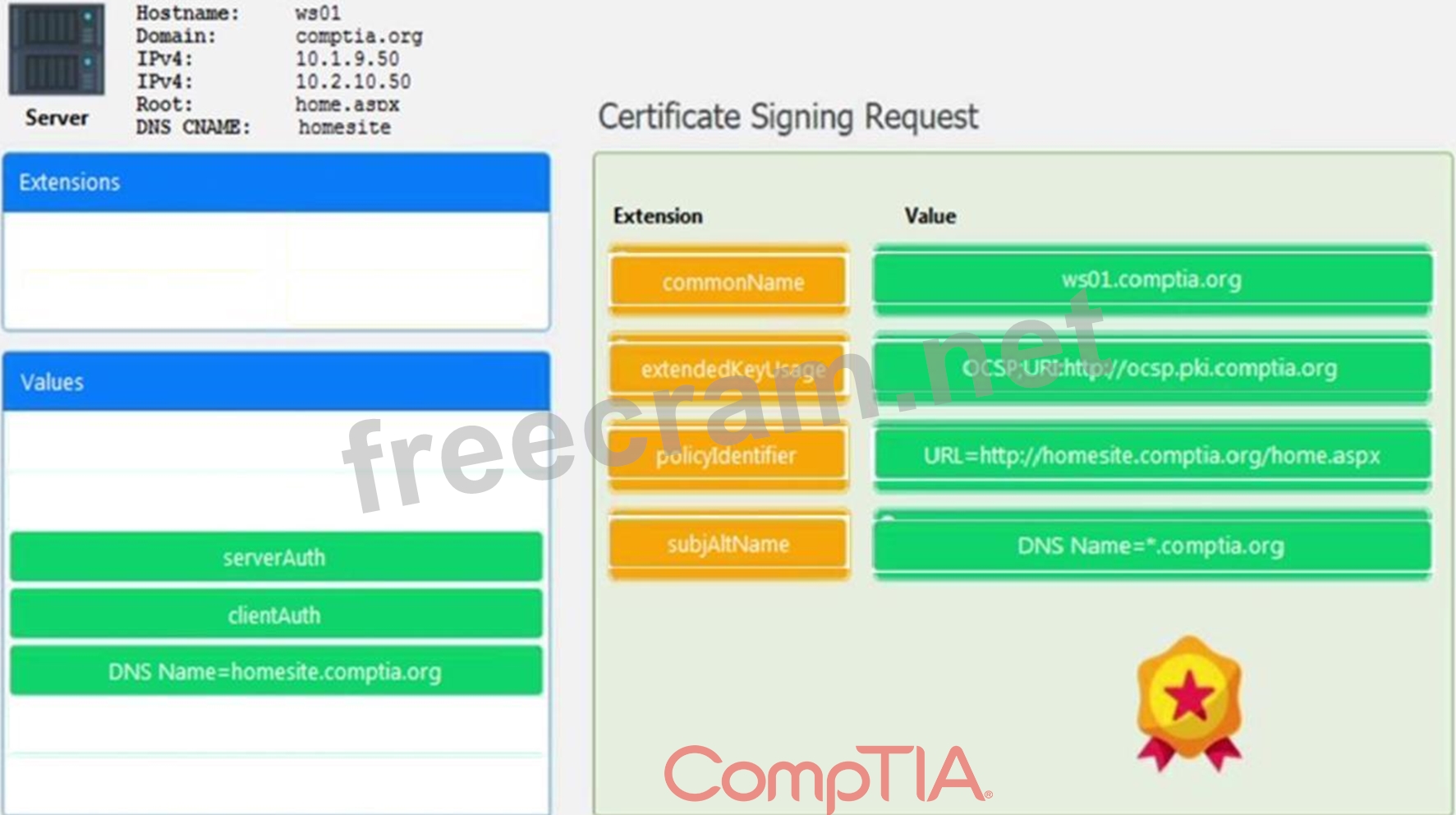 Leveraging the information supplied below, complete the CSR for the server to set up TLS (HTTPS).