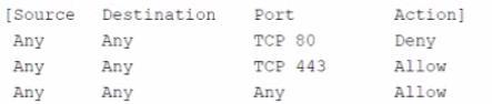 After a recent security incident, a security analyst discovered that unnecessary ports were open on a firewall policy for a web server. Which of the following firewall policies would be MOST secure for a web server?