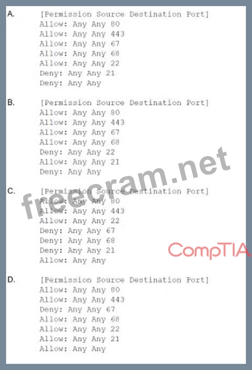 Question 70: An administrator is configuring a firewall rule set for a su...