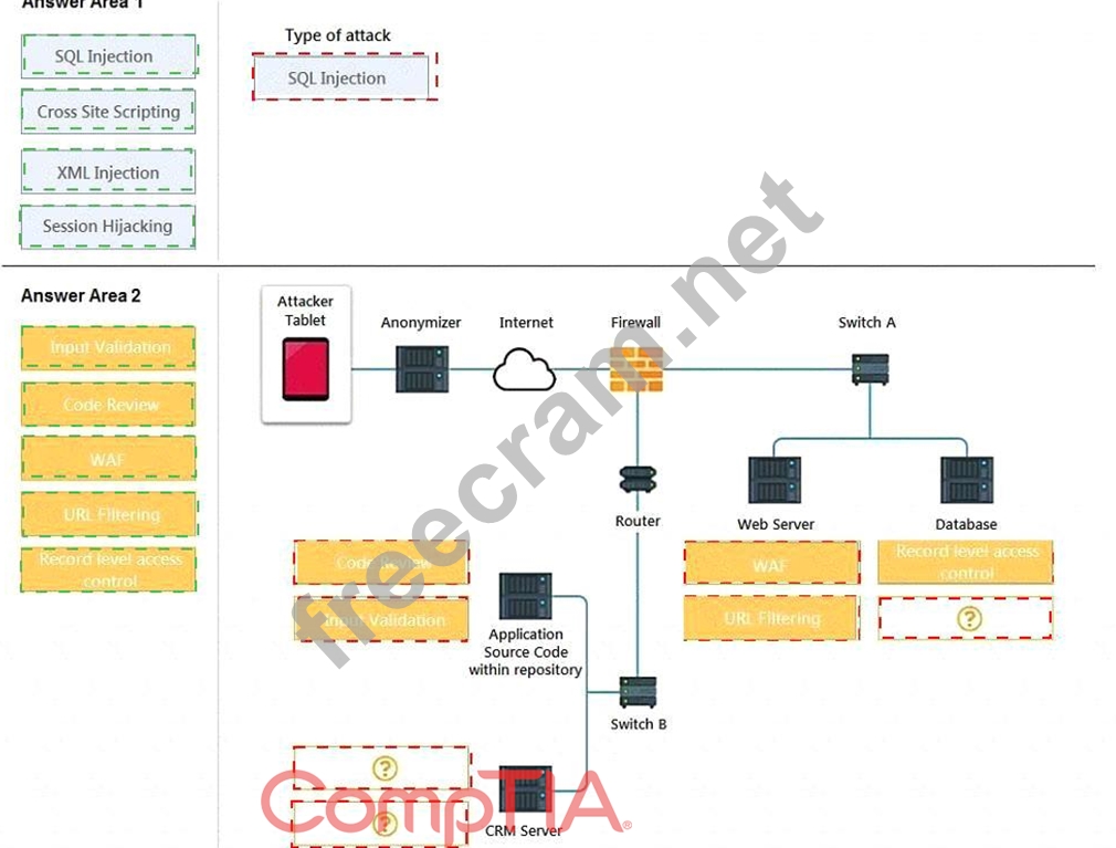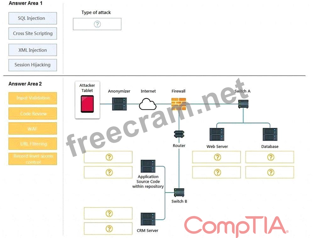 Identify the type of attack that is occurring on the network by clicking on the attacker's tablet and reviewing the output. (Answer Area 1).