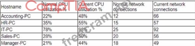 Several users have opened tickets with the help desk. The help desk has reassigned the tickets to a secunty analyst for further review The security analyst reviews the following metrics: