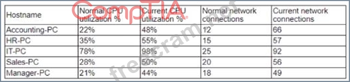 Several users have opened tickets with the help desk. The help desk has reassigned the tickets to a secunty analyst for further review The security analyst reviews the following metrics: