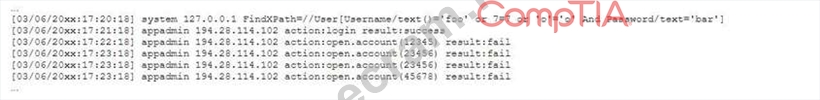 A security analyst receives a SIEM alert that someone logged in to the appadmin test account, which is only used for the early detection of attacks. The security analyst then reviews the following application log: