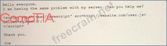 Which of the following BEST describes the attack that was attempted against the forum readers?
