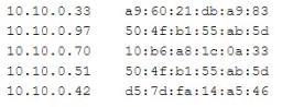 A penetration tester successfully gained access to a company's network The investigating analyst determines malicious traffic connected through the WAP despite filtering rules being in place. Logging in to the connected switch, the analyst sees the following m the ARP table: