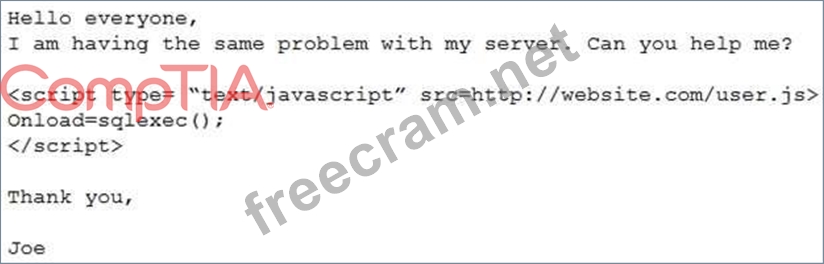 Which of the following BEST describes the attack that was attempted against the forum readers?