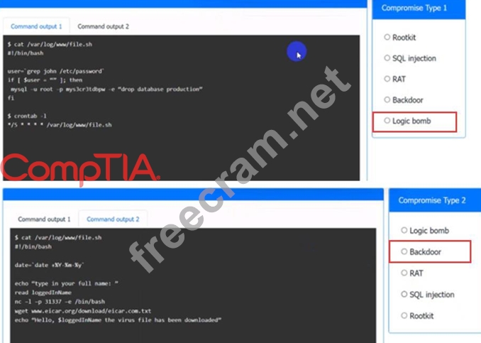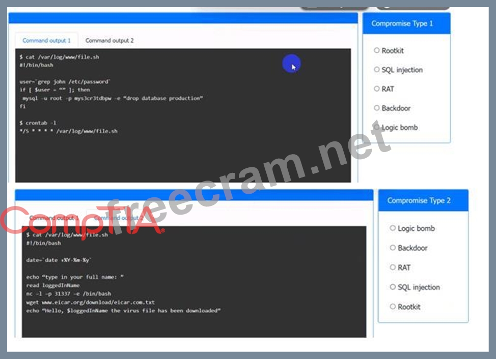 Analyze the command outputs and identify the type of compromise.