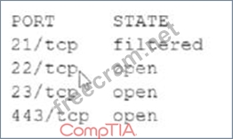 Port 23 belongs to Telnet,is unsecure and sending data in clear text.so answer is B.