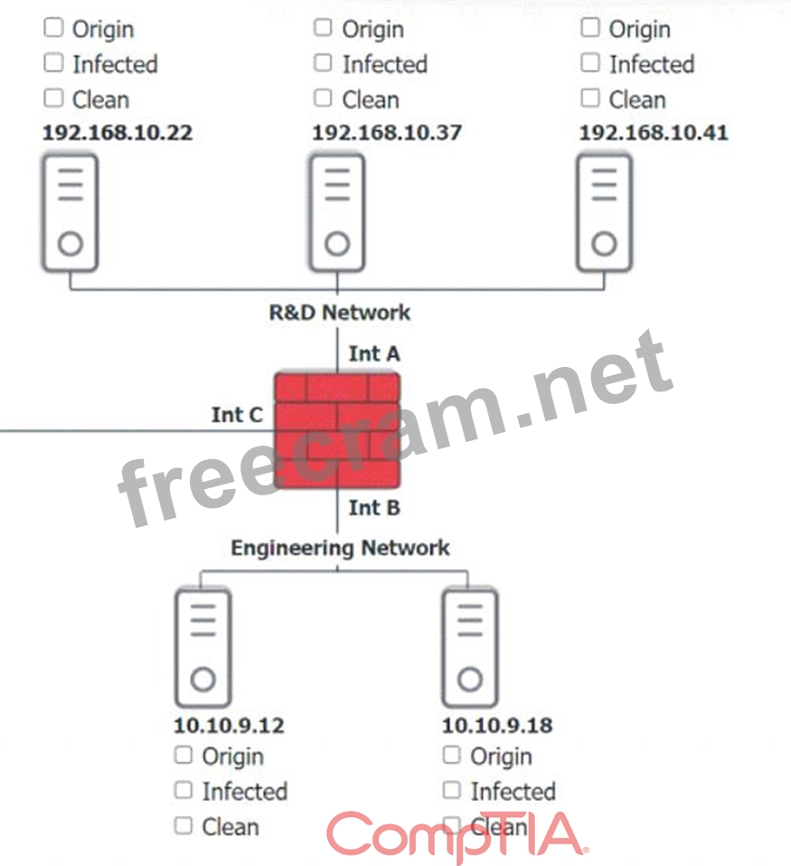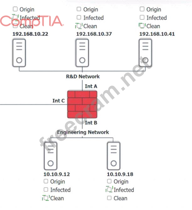 Click on each host and firewall. Review all logs to determine which host originated the Infecton and then deny each remaining hosts clean or infected.