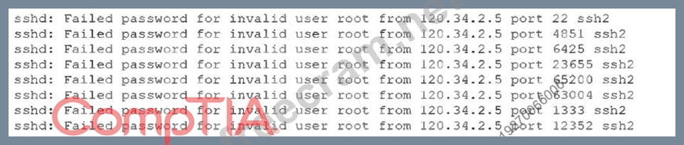A security administrator checks the security logs of a Linux server and sees a lot of the following lines: