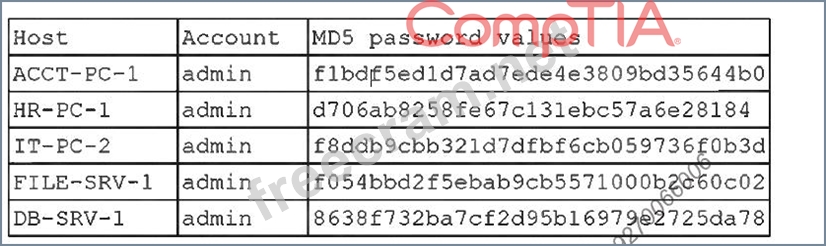 A security administrator recently reset local passwords and the following values were recorded in the system: