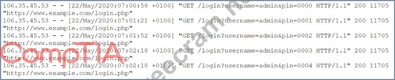 A security analyst is investigating what appears to be unauthorized access to a corporate web application. The security analyst reviews the web server logs and finds the following entries: Which of the following password attacks is taking place?