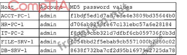 A security administrator recently reset local passwords and the following values were recorded in the system: