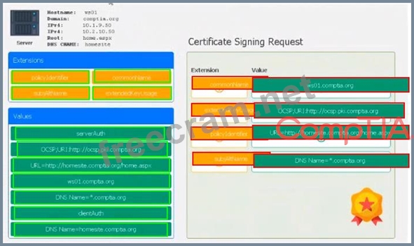Drag the various data points to the correct locations within the CSR. Extension criteria belong in the let hand column and values belong in the corresponding row in the right hand column.