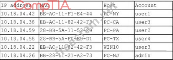 A security analyst finds a rogue device during a monthly audit of current endpoint assets that are connected to the network. The corporate network utilizes 802.1 X for access control. To be allowed on the network, a device must have a known hardware address, and a valid username and password must be entered in a captive portal. The following is the audit report: