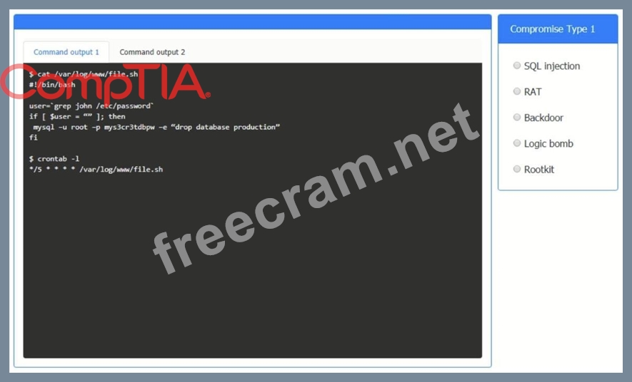 Analyze the command outputs and identify the type of compromise. If at any time you would like to bring back the initial state of the simulation, please click the Reset All button.