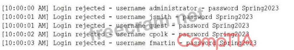 Question 14: A security analyst is reviewing the following logs: (Exhibit...