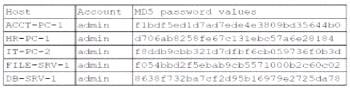 A security administrator recently reset local passwords and the following values were recorded in the system: