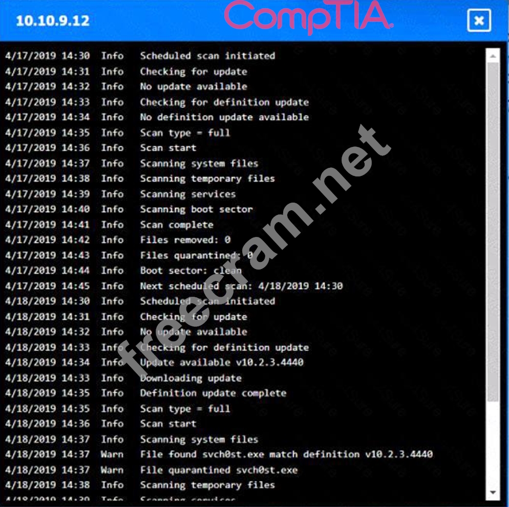 Question 5: A security analyst is reviewing the following logs: (Exhibit...