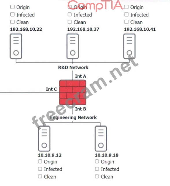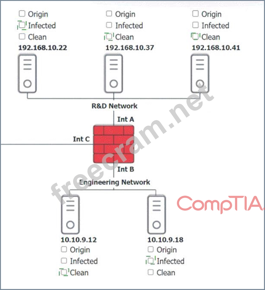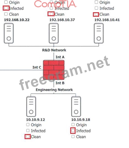 Click on each host and firewall. Review all logs to determine which host originated the Infecton and then deny each remaining hosts clean or infected.
