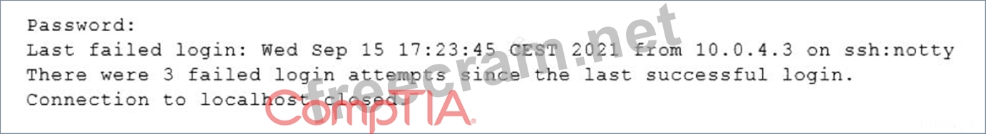 When trying to log in remotely to a server, a user receives the following message: The server administrator is investigating the issue on the server and receives the following outputs: Which of the following is causing the issue?