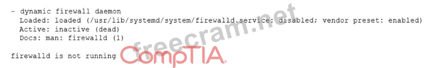 The reason the firewall rules are not active is that the firewalld service is not enabled. This means that the service will not start automatically at boot time or after a system reload. To enable the firewalld service, the systems administrator needs to use the command sudo systemct1 enable firewalld. This will create a symbolic link from the firewalld service file to the appropriate systemd target, such as multi-user.target. Enabling the service does not start it immediately, so the systems administrator also needs to use the command sudo systemct1 start firewalld or sudo systemct1 reload firewalld to activate the firewall rules. The other options are not correct reasons for the firewall rules not being active. iptables is not conflicting with firewalld, because firewalld uses iptables as its backend by default. The wrong system target is not activated, because firewalld is independent of the system target and can be enabled for any target. FIREWALL_ARGS has no value assigned, but this is not a problem, because FIREWALL_ARGS is an optional environment variable that can be used to pass additional arguments to the firewalld daemon, such as --debug or --nofork. If FIREWALL_ARGS is empty or not defined, firewalld will use its default arguments. References: firewalld. service(8) - Linux manual page; firewall-cmd(1) - Linux manual page; systemct1(1) - Linux manual page