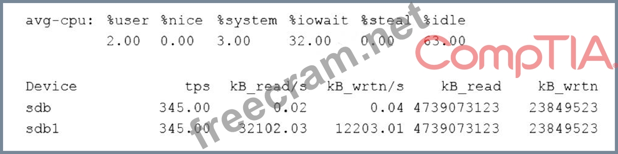 An administrator is trying to diagnose a performance issue and is reviewing the following output: System Properties: CPU: 4 vCPU Memory: 40GB Disk maximum IOPS: 690 Disk maximum throughput: 44Mbps | 44000Kbps Based on the above output, which of the following BEST describes the root cause?