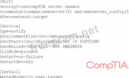 The security team has identified a web service that is running with elevated privileges A Linux administrator is working to change the systemd service file to meet security compliance standards. Given the following output: Which of the following remediation steps will prevent the web service from running as a privileged user?
