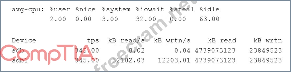 An administrator is trying to diagnose a performance issue and is reviewing the following output: System Properties: CPU: 4 vCPU Memory: 40GB Disk maximum IOPS: 690 Disk maximum throughput: 44Mbps | 44000Kbps Based on the above output, which of the following BEST describes the root cause?