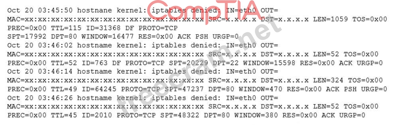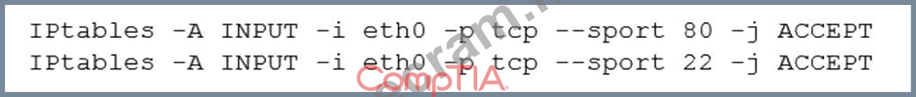 Some servers in an organization have been compromised. Users are unable to access to the organization's web page and other services. While reviewing the system log, a systems administrator notices messages from the kernel regarding firewall rules: Which of the following commands will remediate and help resolve the issue?