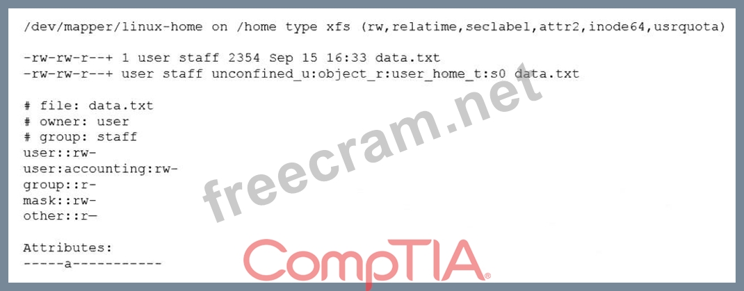 Question 51: A Linux administrator is trying to remove the ACL from the f...