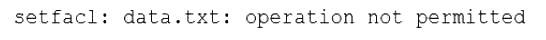 A Linux administrator is trying to remove the ACL from the file /home/user/data. txt but receives the following error message: