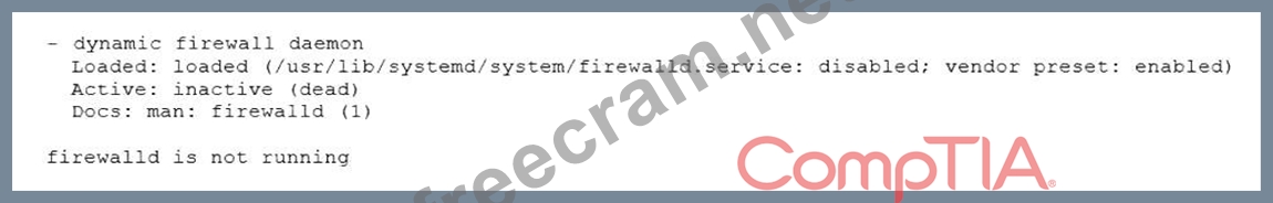 The reason the firewall rules are not active is that the firewalld service is not enabled. This means that the service will not start automatically at boot time or after a system reload. To enable the firewalld service, the systems administrator needs to use the command sudo systemct1 enable firewalld. This will create a symbolic link from the firewalld service file to the appropriate systemd target, such as multi-user.target. Enabling the service does not start it immediately, so the systems administrator also needs to use the command sudo systemct1 start firewalld or sudo systemct1 reload firewalld to activate the firewall rules. The other options are not correct reasons for the firewall rules not being active. iptables is not conflicting with firewalld, because firewalld uses iptables as its backend by default. The wrong system target is not activated, because firewalld is independent of the system target and can be enabled for any target. FIREWALL_ARGS has no value assigned, but this is not a problem, because FIREWALL_ARGS is an optional environment variable that can be used to pass additional arguments to the firewalld daemon, such as --debug or --nofork. If FIREWALL_ARGS is empty or not defined, firewalld will use its default arguments. References: firewalld. service(8) - Linux manual page; firewall-cmd(1) - Linux manual page; systemct1(1) - Linux manual page