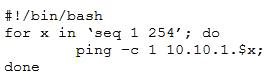 Question 127: A penetration tester writes the following script: (Exhibit) ...