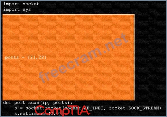 Analyze the code segments to determine which sections are needed to complete a port scanning script.