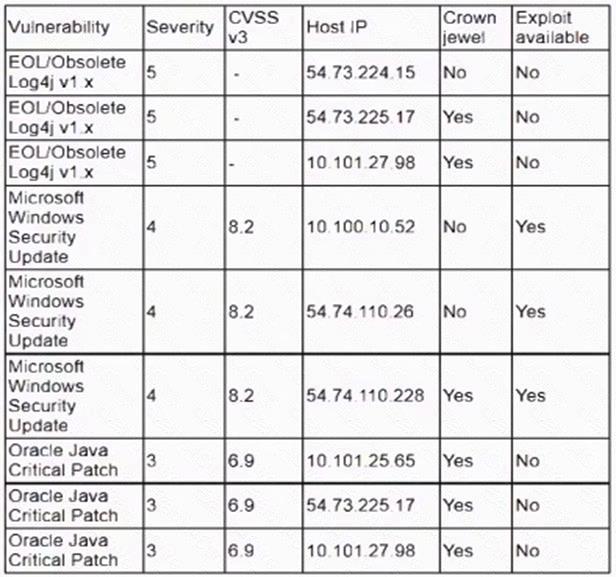 An analyst is reviewing a vulnerability report for a server environment with the following entries: