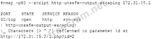 The security team reviews a web server for XSS and runs the following Nmap scan: Which of the following most accurately describes the result of the scan?