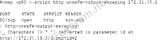 The security team reviews a web server for XSS and runs the following Nmap scan: