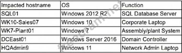 The security team at a company, which was a recent target of ransomware, compiled a list of hosts that were identified as impacted and in scope for this incident. Based on the following host list: