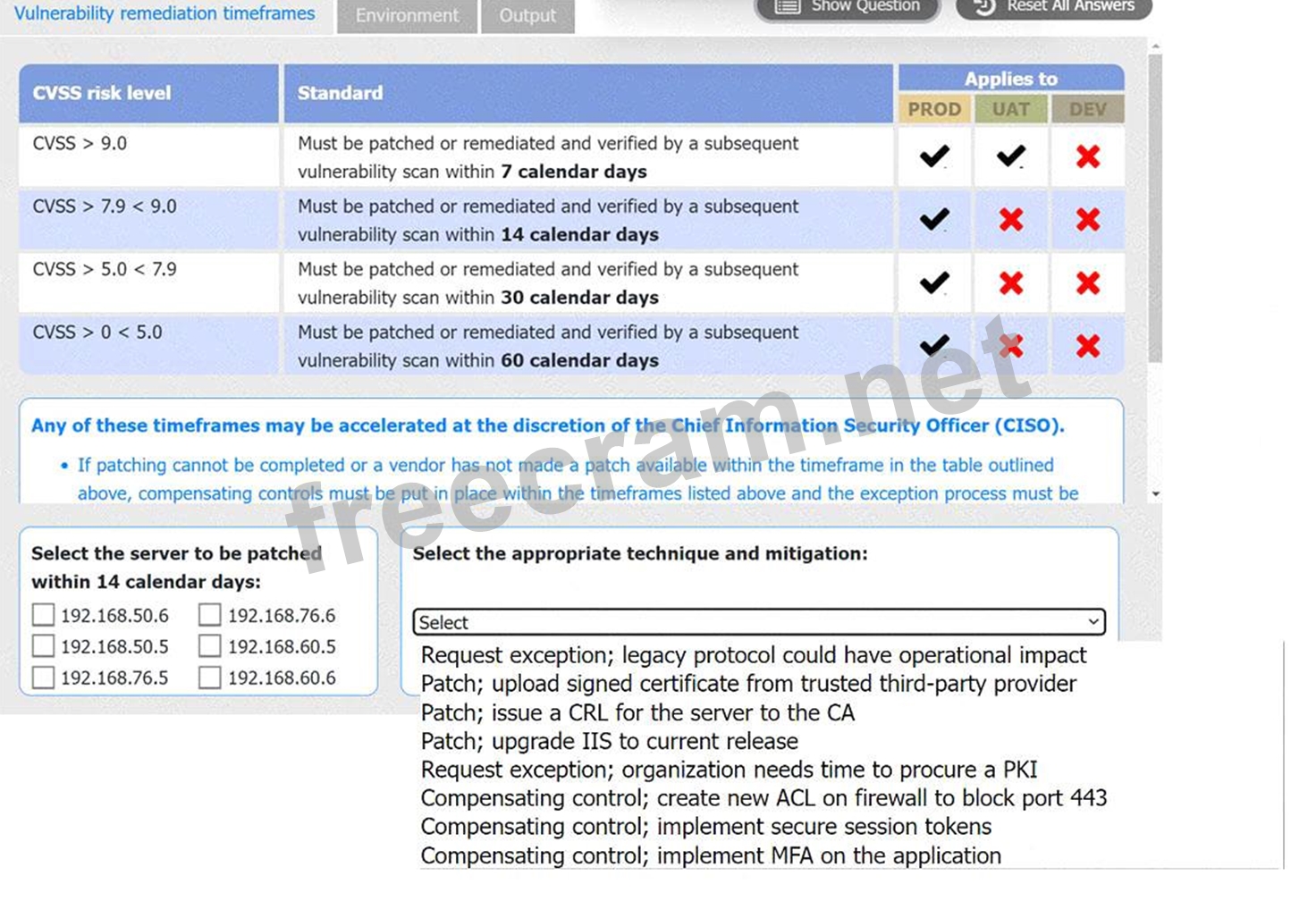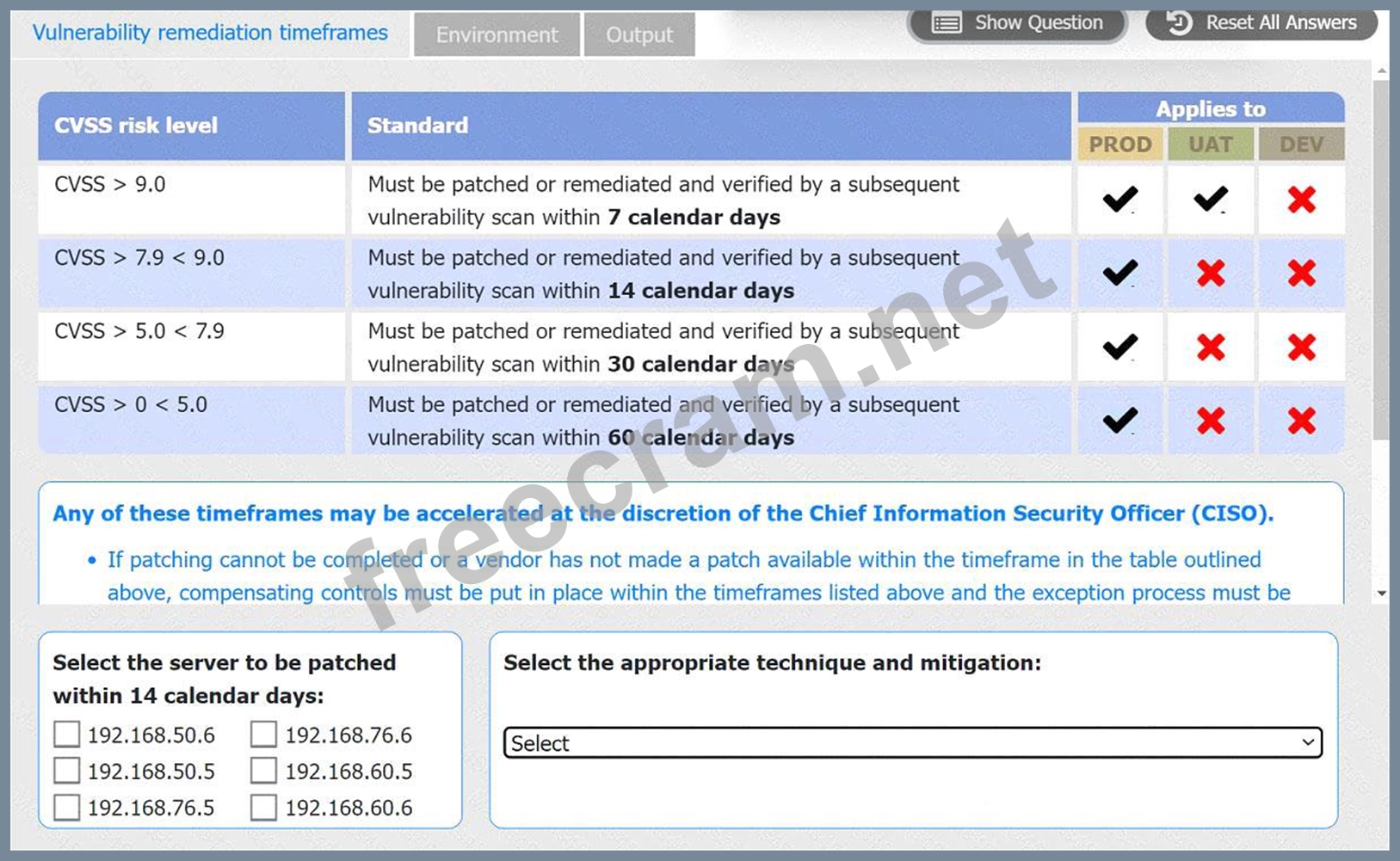 * However, 192.168.76.5, with a CVSS score of 9.2, has a vulnerability that necessitates a quick response and fits as it must be patched within the shortest timeframe (7 days, which includes 14 days).