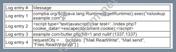 A zero-day command injection vulnerability was published. A security administrator is analyzing the following logs for evidence of adversaries attempting to exploit the vulnerability: Which of the following log entries provides evidence of the attempted exploit?