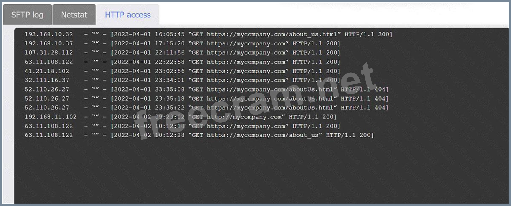 * 32.111.16.37 repeatedly accessed /about_us.html with 404 errors, indicating attempts to reach non- existing pages.